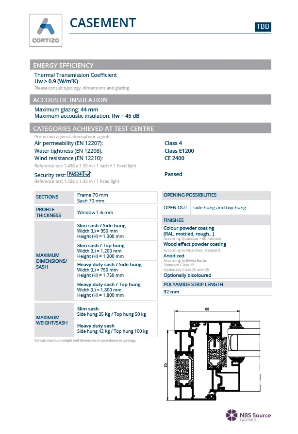 Sleek, secure, and built to perform, Cortizo Casement Windows offer a modern aluminium profile with slim sightlines and excellent thermal insulation. Designed for versatility and durability, they’re ideal for both residential and commercial projects where style and efficiency matter.