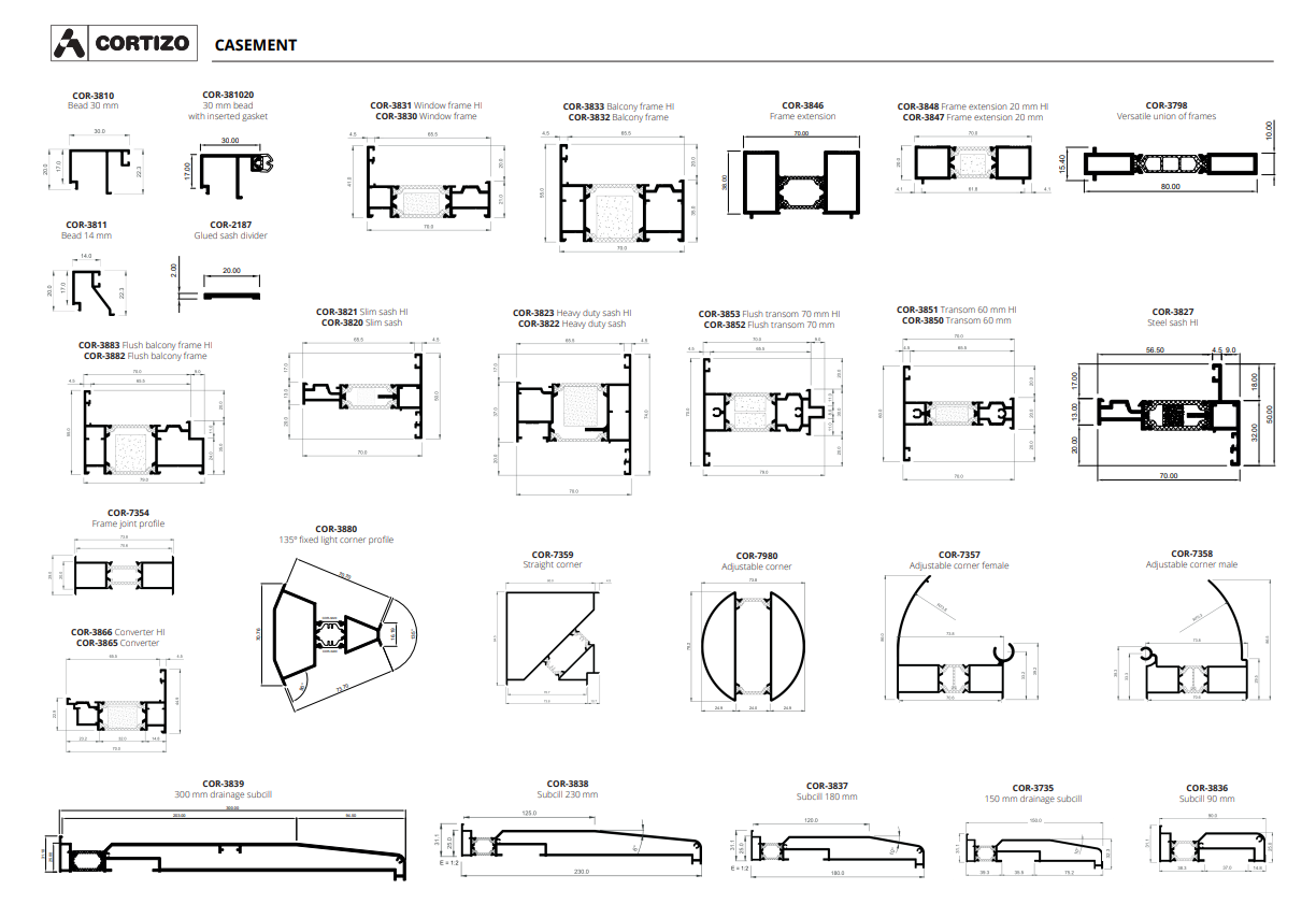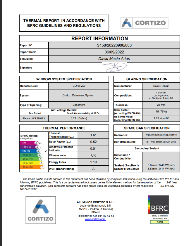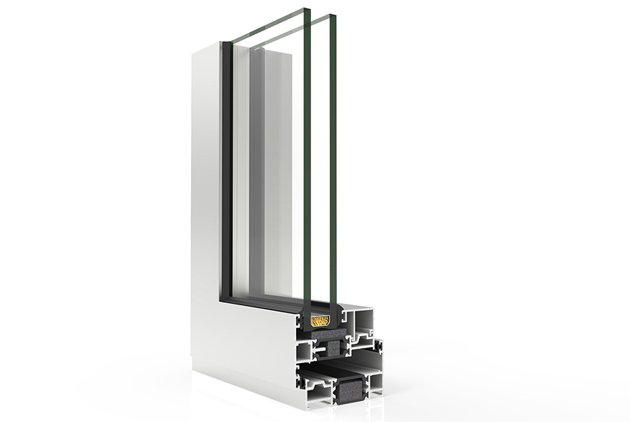 The Cortizo casement window system features a 32 mm thermal break, achieving impressive thermal transmittance values as low as Uw 0.9 W/m²K, ensuring exceptional energy efficiency and reduced heat loss.